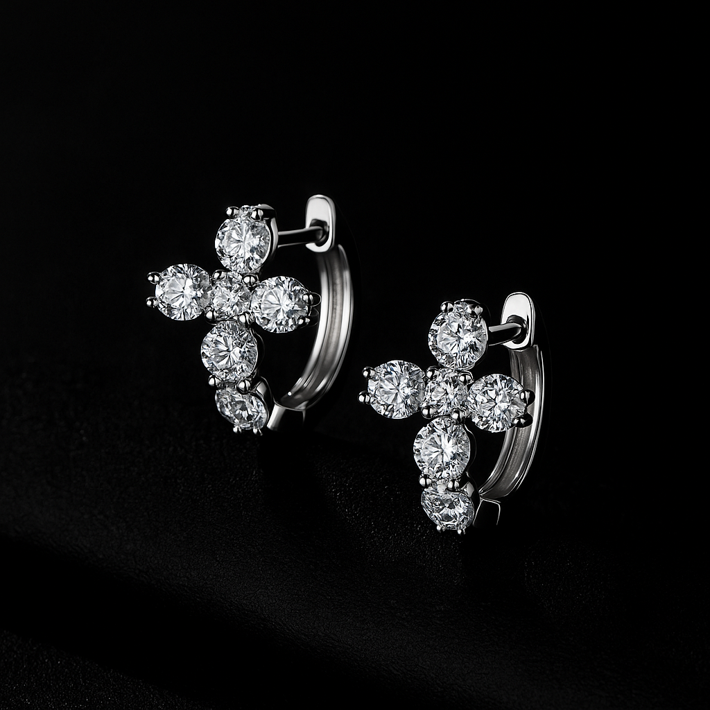 Set with premium moissanite stones, each earring offers a breathtaking brilliance — fire, clarity, and shine that rivals the look of real diamonds, without the price tag.