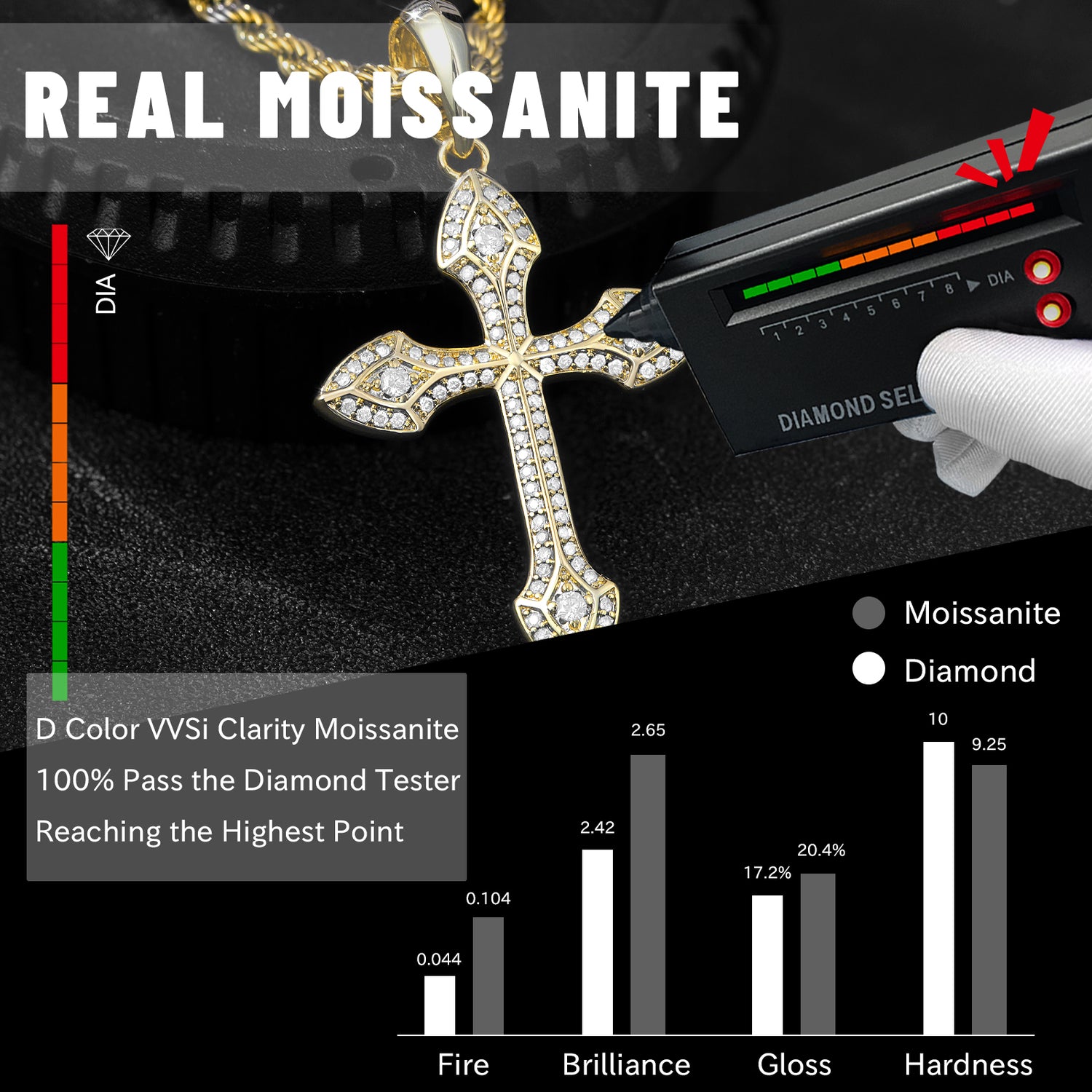 Package Includes | 1 × Moissanite Cross Pendant Necklace |
