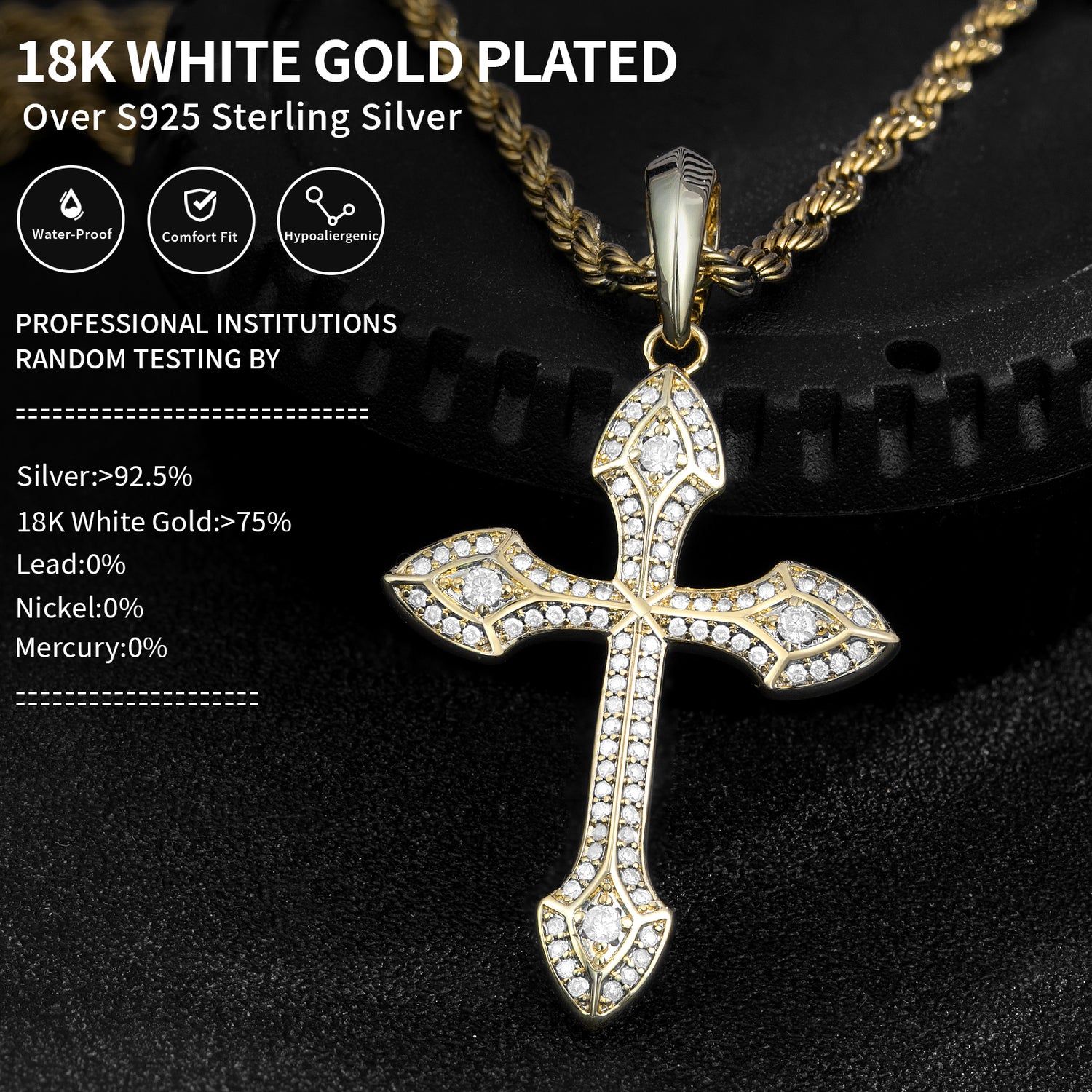 Product Name | Fthway 18K White Gold-Plated Sterling Silver Moissanite Cross Pendant Necklace |