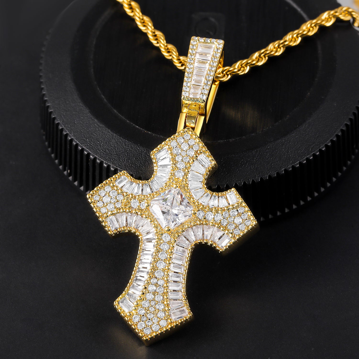 Product Name | Fthway 18K Gold-Plated Sterling Silver CZ Cross Pendant Necklace |