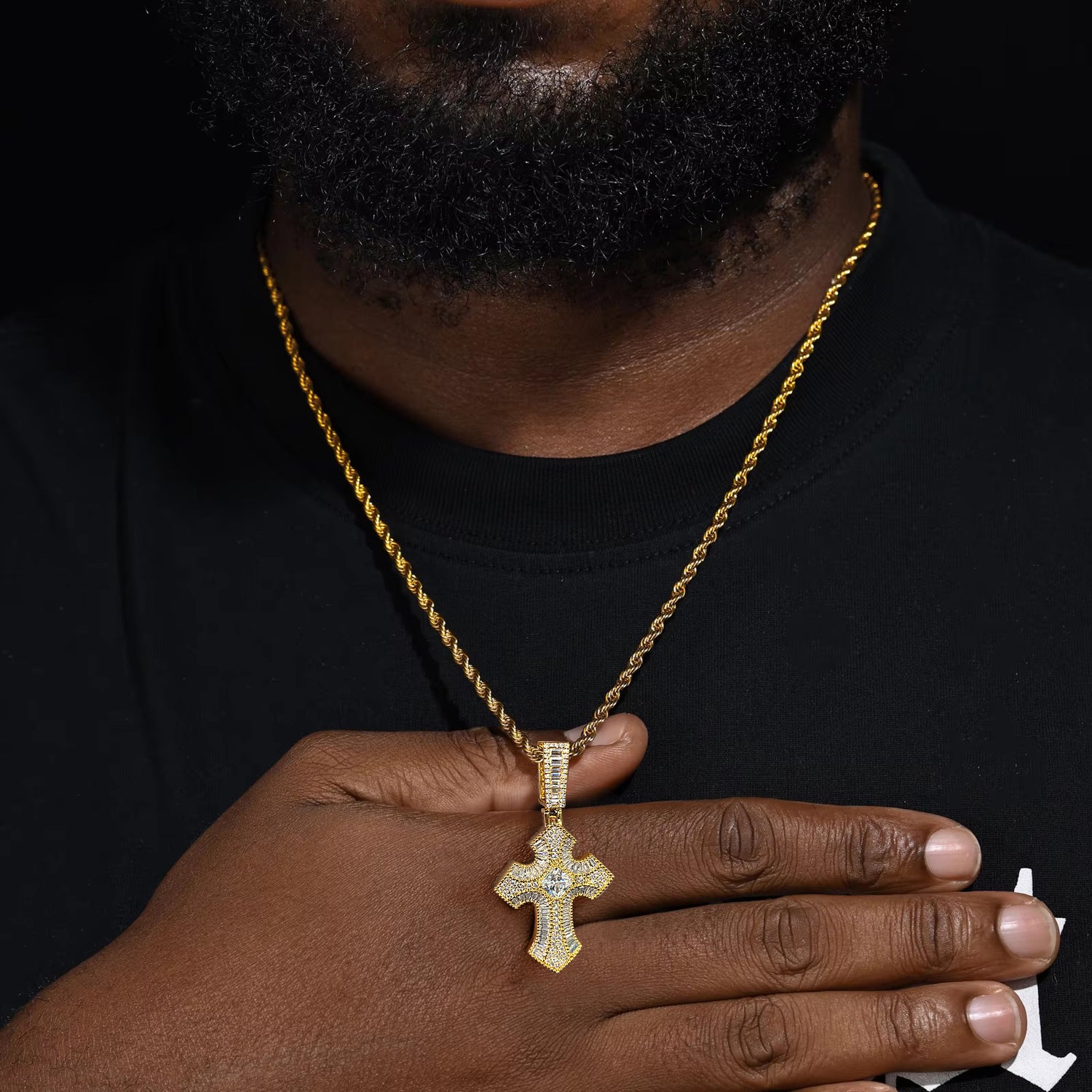 Fthway FaithGlow Gold-Plated Sterling Silver CZ Cross Necklace | Unisex with Stainless Steel Chain